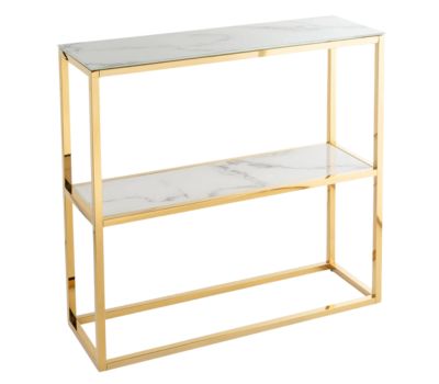 6. A dekoratív Elegance konzolasztal fehér márványmintás asztallapjával és kecses, aranyszínű lábaival igazán finom kontrasztot alkot. Figyelemfelkeltő, mégis bájos darab.