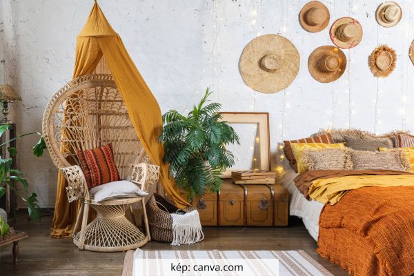 Ha természetes hatást szeretnénk kelteni, akkor kombináljuk a barna szín árnyalataival vagy fonott rattanbútorokkal és természetes anyagokból készült kiegészítőkkel, dekorációkkal. Fehér falakkal, rattan fotellel, zöld növényekkel és terrakotta kiegészítőkkel egy narancssárga ágyneműgarnitúra igazán természetközeli hangulatot eredményez a hálószobában.